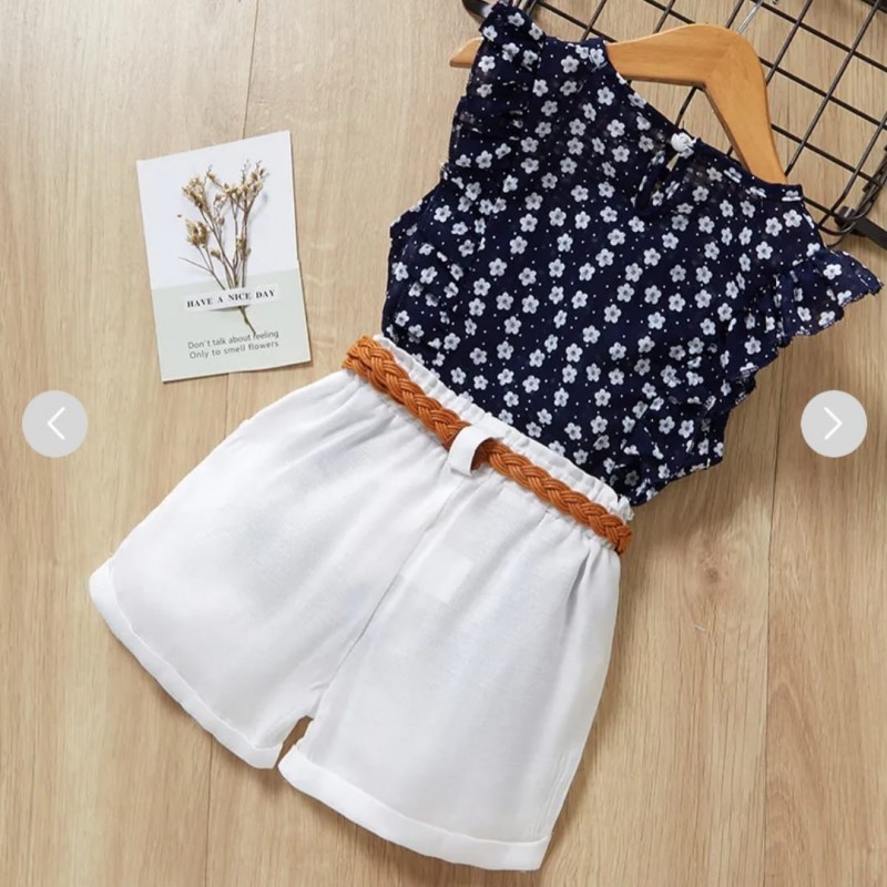 toddler floral polka dot printed sleeveless T-shirt & shorts with belt