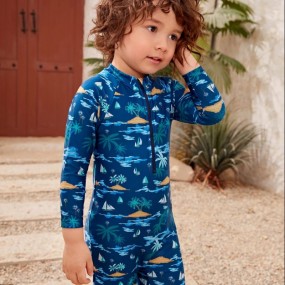 Young Boy Coconut Tree & Sailboat Print Raglan Sleeve O...