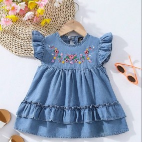 Baby Girl Spring Rural Style Folk Flower Embroidery Det...
