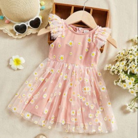 SHEIN Baby Girl Floral Print Ruffle Trim Mesh Overlay D...
