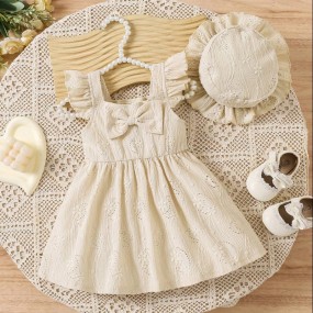 3pcs Baby Girl Romper Set Ribbed Cap Sleeve Bodysuit, F...