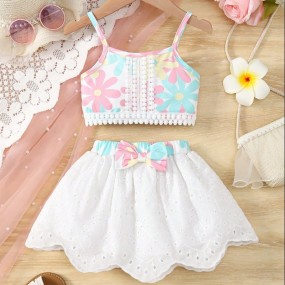 2pcs Baby Girl Summer Set: Bow Strap Top Floral Print ...