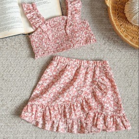 SHEIN 2 Pieces Cute Floral & Bow Pattern Casual Outfit ...