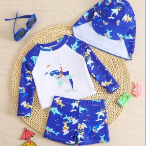 Young Boy Holiday Beach Cartoon Printed Swimwear Set