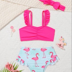 SHEIN Baby Girl Flamingo Print Ruffle Trim Beachwear Wi...