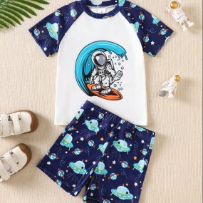 2pcs Boys Swimsuit Set, Cartoon Astronaut