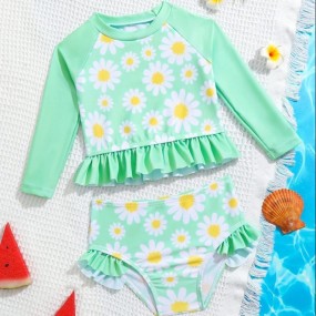 Baby Girl Floral Print Ruffle Hem High Neck Raglan Slee...