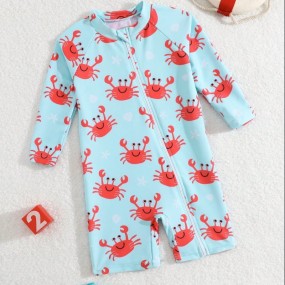 SHEIN Baby Long Sleeve Swimsuit, Cute Crab Cartoon Prin...