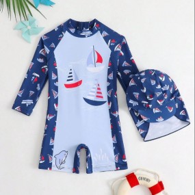 SHEIN Baby Boy Cute Cartoon Sailboat Print Long Sleeve ...