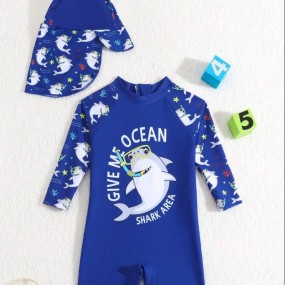 Baby Boy Beach Pool Cartoon Shark Printed One-Piece Swi...