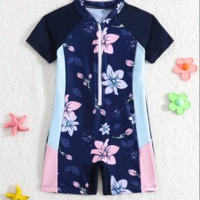 Baby Girls' Summer Color-Block Flower Pattern One Piece...
