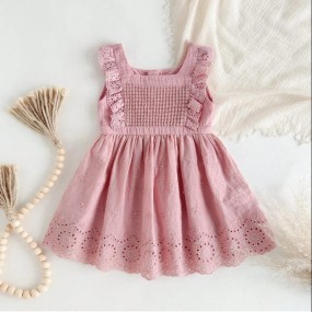 Loomiva Baby Girl Ruffled Trim Round Neck Sleeveless Ci...