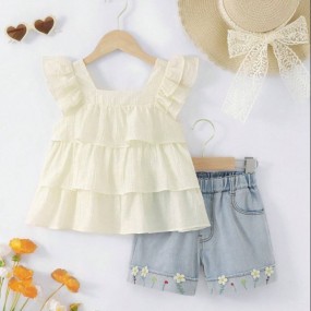 Young Girl Cute Ladylike 3D Embroidered 2pcs Daily Wear...