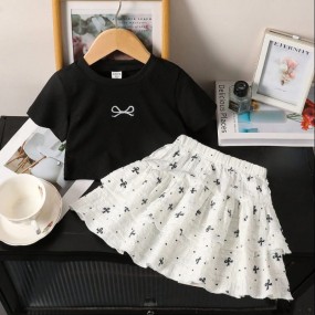 Young Girls' Bow Print Round Neck Short Sleeve T-Shirt ...