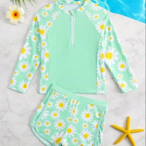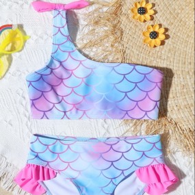 Young Girl Fish Scale Print One Shoulder Bikini Set Sum...