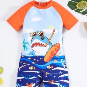 Baby Boy Cartoon Print One-Piece Swimsuit Swimming Suit...