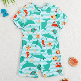 Baby Boy Cartoon Dolphin Print One Piece Swimsuit With ...