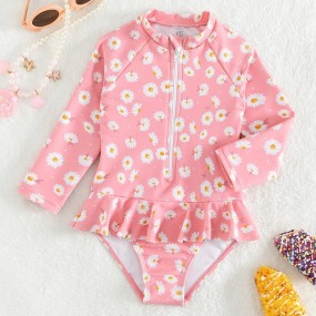 Baby Floral Print Raglan Sleeve Peplum One Piece Swimsu...