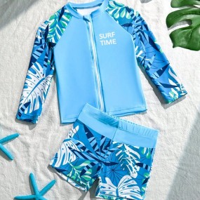 Young Boy Tropical Plant Print Raglan Sleeve Top And Sh...