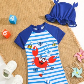 Baby Boy Striped Crab Print One Piece Swimsuit For Summ...