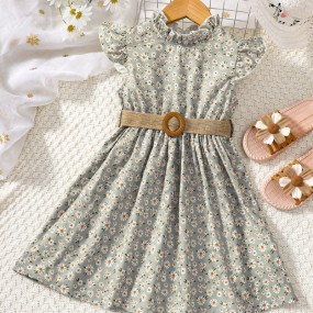 Toddler Girls Ditsy Floral Print Ruffle Trim Belted Dre...