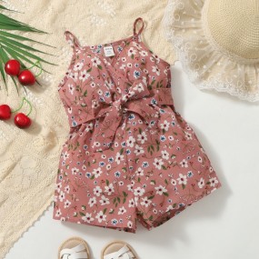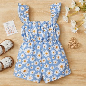 SHEIN Baby Daisy Floral Print Ruffle Trim Romper