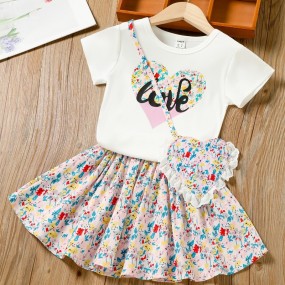 Toddler Girls Heart & Letter Graphic Tee & Floral Print...
