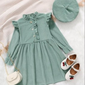Toddler Girls Frill Trim Flounce Sleeve Corduroy Dress ...