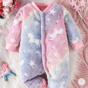 Baby Girl Unicorn Print Ombre Teddy Jumpsuit