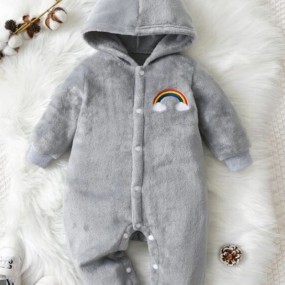 Baby Rainbow Embroidery Hooded Flannel Jumpsuit