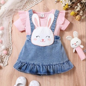 Baby Girl Ruffle Trim Tee & Cartoon Graphic Overall Dre...