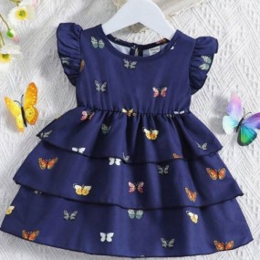 Baby Girl Butterfly Print Butterfly Sleeve Layer Ruffle...