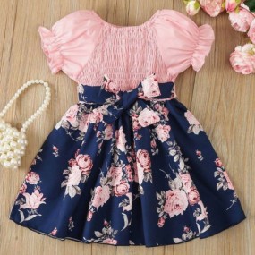 Baby Girls' Butterfly Printed Patchwork Puff Sleeve Bel...