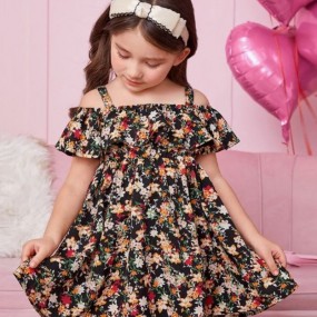 SHEIN Young Girl Casual Vacation Dress With Thin Should...