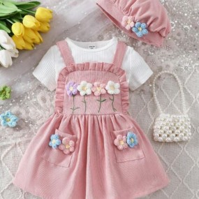 SHEIN Young Girl Toddler Girls' Embroidered Floral Patt...