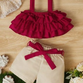 SHEIN Baby Girl Layered Ruffle Trim Cami Top & Belted S...