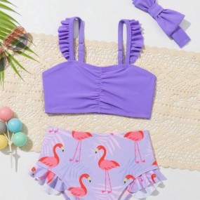 Baby Girl Ruffled Strap Flamingo Patterned Two Piece Sw...