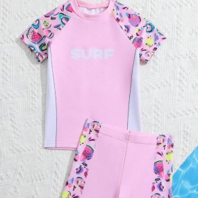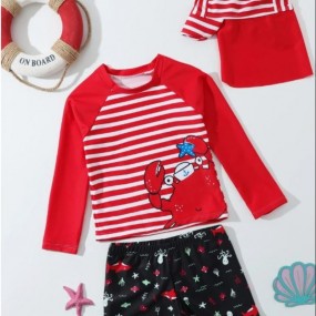 Young Boy Cartoon Graphic Beach Swimsuit & Cap