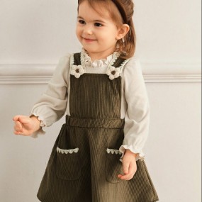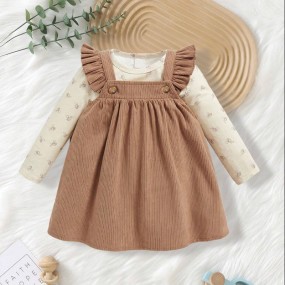 SHEIN 2pcs Set Girls Autumn Bib Dress Outfit, Long Slee...