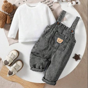 SHEIN Baby Boy Fresh White Round Neck Long Sleeve Top ...