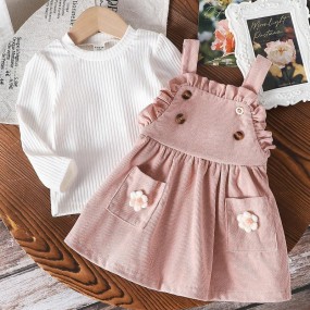 2pcs Babygirl's Textured Pink Outfit Set With Cute Flor...