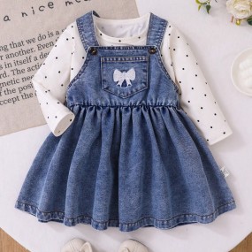 2pcs Set Infant Toddler Girls' Cozy Polka Dot Long Slee...
