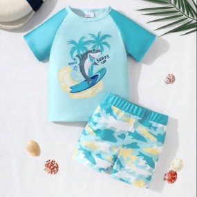2pcs Young Boy Kids Swimsuit, Swimwear Set For Children...