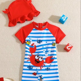 Baby Boy Striped & Cartoon Graphic One Piece Swimsuit W...